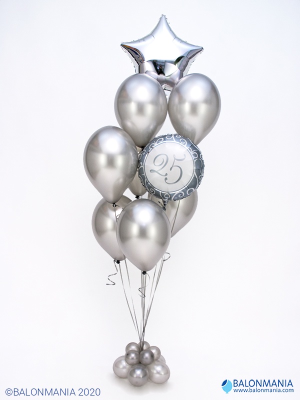 Šopek JUMBO iz balonov "Srebrnih 25" sestavlja: